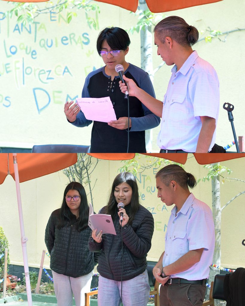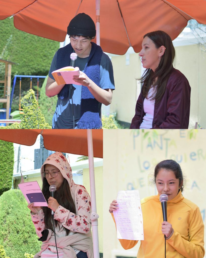 - Poesía en Vivo: Abrimos un espacio de micrófono abierto donde el protagonismo fue íntegramente de los estudiantes. Los jóvenes tuvieron la valentía y la oportunidad de leer sus propios textos frente a sus compañeros, compartiendo reflexiones, emociones y un notable nivel de redacción.
